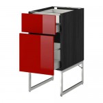 МЕТОД / МАКСИМЕРА Напольн шкаф 2фронт пнл/2низ/1вс ящ - 40x60x60 см, Рингульт глянцевый кремовый, под дерево черный