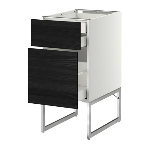 МЕТОД / МАКСИМЕРА Напольн шкаф 2фронт пнл/2низ/1вс ящ - белый, Тингсрид под дерево черный, 40x60x60 см