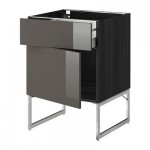 МЕТОД / МАКСИМЕРА Напольный шкаф с ящиком/дверью - 40x60x60 см, Рингульт глянцевый серый, под дерево черный