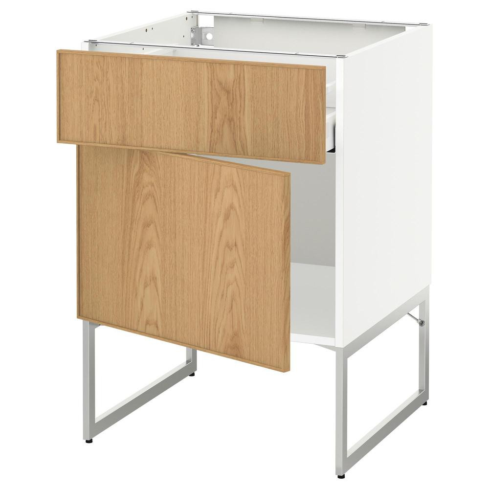 МЕТОД / МАКСИМЕРА Напольный шкаф с ящиком/дверью - белый, Экестад дуб, 60x60x60 см