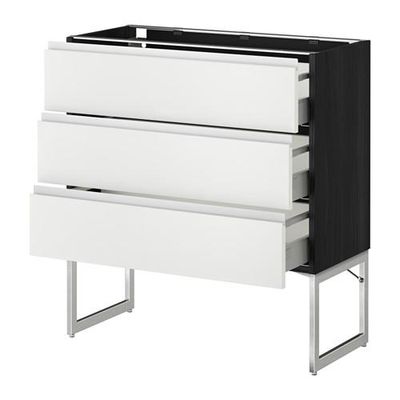 МЕТОД / МАКСИМЕРА Нплн шк 3 фрнт/3 средн ящика - 80x37x60 см, Нодста белый/алюминий, под дерево черный