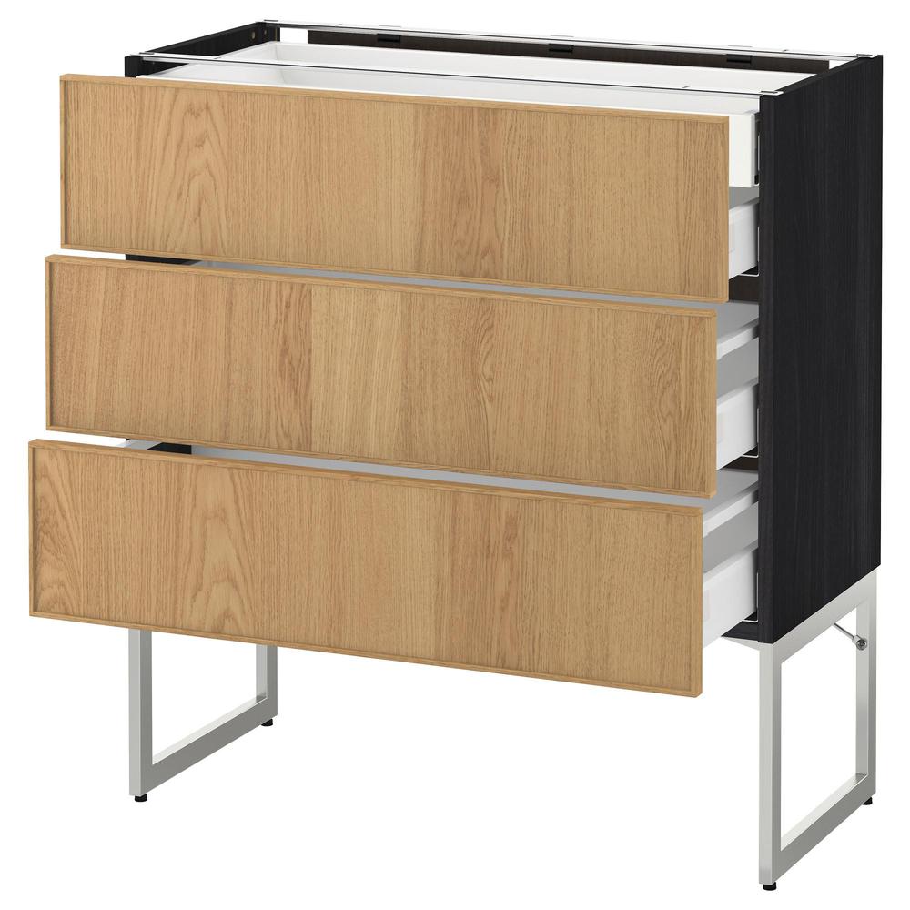 МЕТОД / МАКСИМЕРА Напольн шкаф 3фронт пнл/2низ/2ср ящ - под дерево черный, Экестад дуб, 80x37x60 см