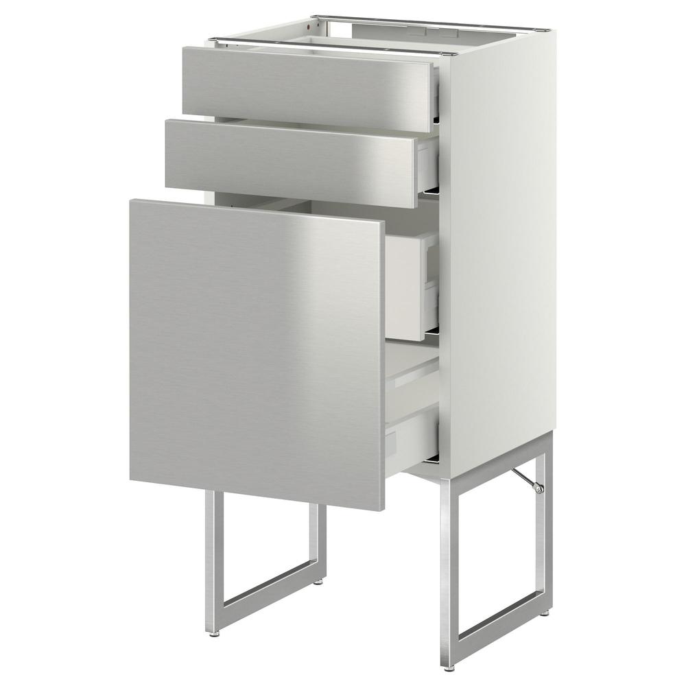 МЕТОД / МАКСИМЕРА Напольн шкаф 3фронт пнл/2низ/2ср ящ - белый, Гревста нержавеющ сталь, 40x37x60 см