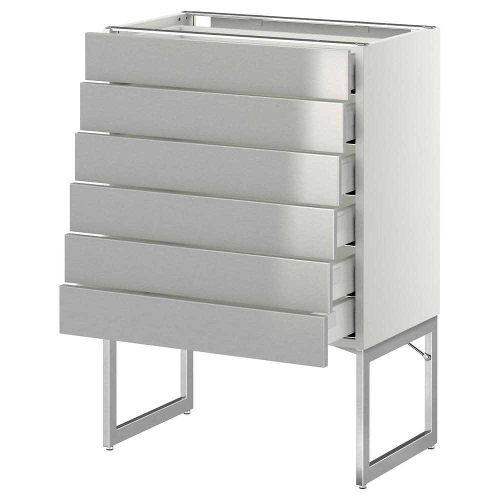 МЕТОД / МАКСИМЕРА Напольн шкаф 6фронт пнл/6 низ ящ - белый, Гревста нержавеющ сталь, 60x37x60 см