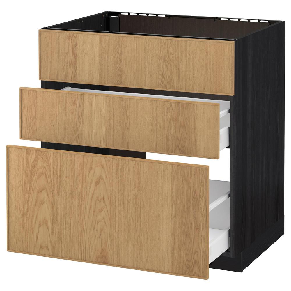 МЕТОД / МАКСИМЕРА Напольн шк п-мойку+3фрнт пнл/2ящ - под дерево черный, Экестад дуб, 80x60 см