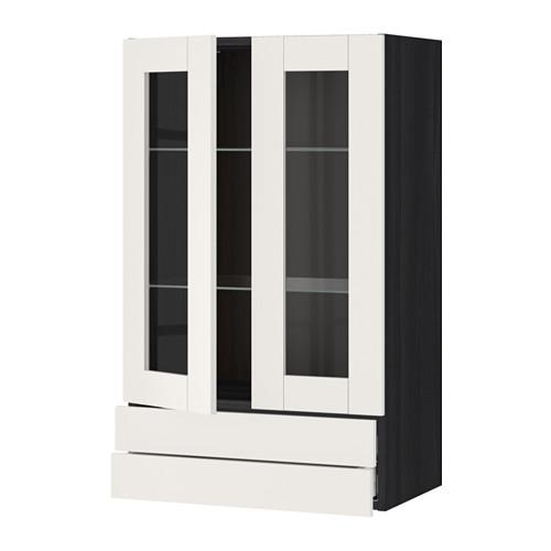 МЕТОД / МАКСИМЕРА Навесной шкаф/2 стек дв/2 ящика - под дерево черный, Сэведаль белый, 60x100 см
