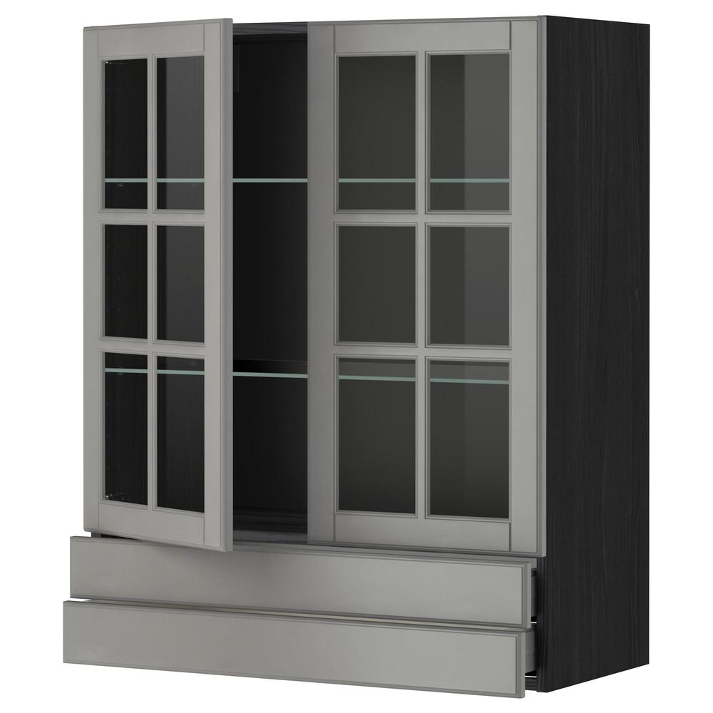 МЕТОД / МАКСИМЕРА Навесной шкаф/2 стек дв/2 ящика - под дерево черный, Будбин серый, 80x100 см