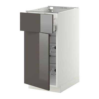 МЕТОД / МАКСИМЕРА Напольн шкаф с пров корз/ящ/дверью - 40x60 см, Рингульт глянцевый серый, белый