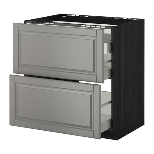 МЕТОД / МАКСИМЕРА Напольн шкаф/2 фронт пнл/3 ящика - под дерево черный, Будбин серый, 80x60 см