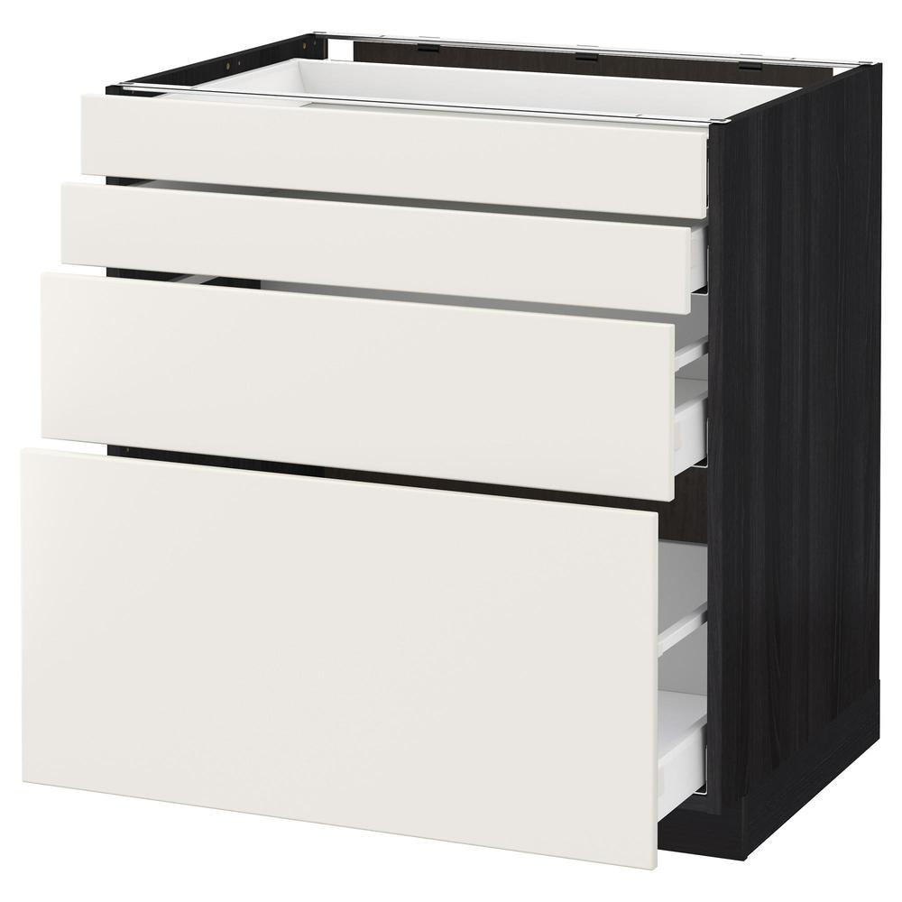 МЕТОД / МАКСИМЕРА Напольн шкаф 4 фронт панели/4 ящика - под дерево черный, Веддинге белый, 80x60 см