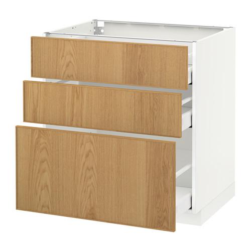МЕТОД / МАКСИМЕРА Напольный шкаф с 3 ящиками - белый, Экестад дуб, 80x60 см