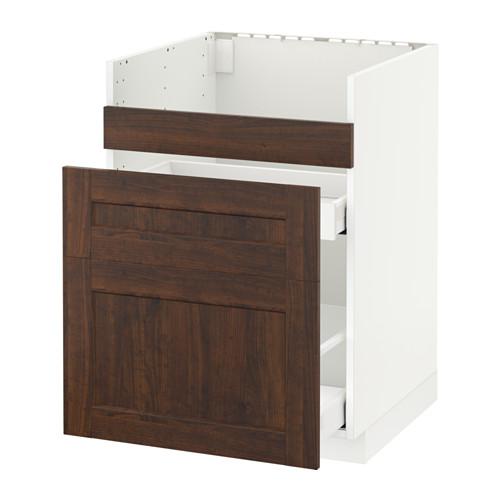 МЕТОД / МАКСИМЕРА Нап шкаф п/мойку ДУМШЁ/3фасада/2ящ - белый, Эдсерум под дерево коричневый, 60x60 см