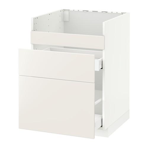 МЕТОД / МАКСИМЕРА Нап шкаф п/мойку ДУМШЁ/3фасада/2ящ - белый, Веддинге белый, 60x60 см