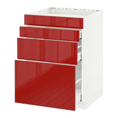 МЕТОД / МАКСИМЕРА Нап шкаф д/духовки/4фасада/3ящика - 60x60 см, Рингульт глянцевый красный, белый
