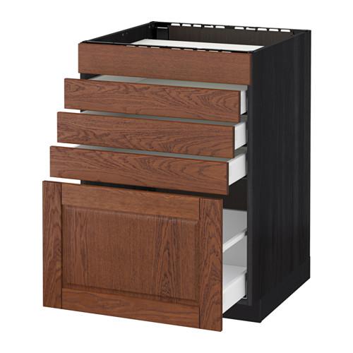 МЕТОД / МАКСИМЕРА Напольн шк д/вар панели/5фасад/4ящ - под дерево черный, Филипстад коричневый, 60x60 см