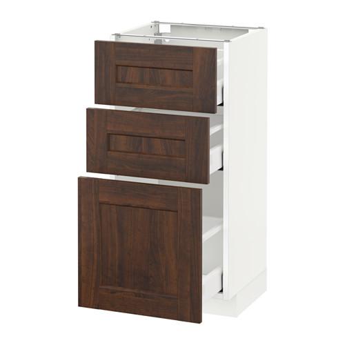 МЕТОД / МАКСИМЕРА Напольный шкаф с 3 ящиками - белый, Эдсерум под дерево коричневый, 40x37 см