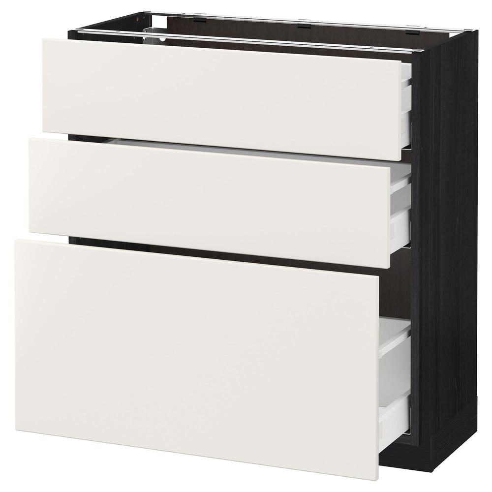 МЕТОД / МАКСИМЕРА Напольный шкаф с 3 ящиками - под дерево черный, Веддинге белый, 80x37 см