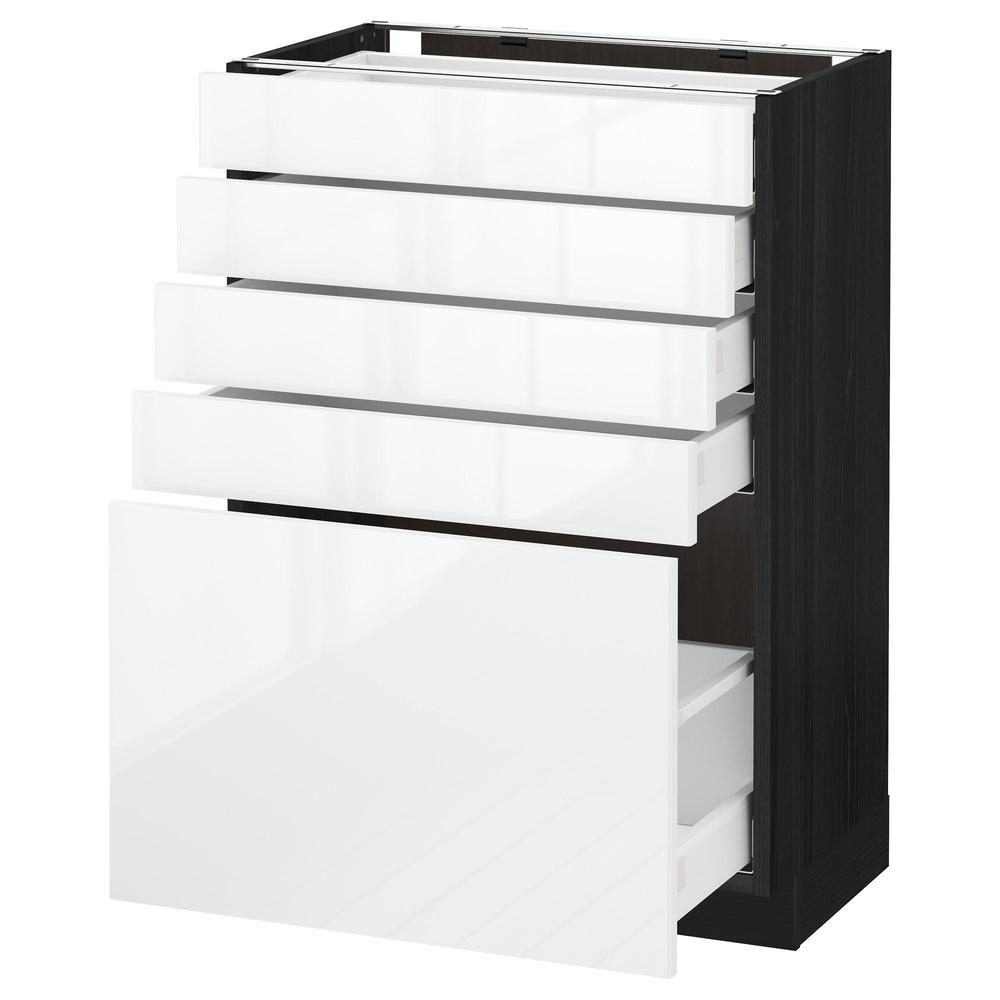 МЕТОД / МАКСИМЕРА Напольный шкаф с 5 ящиками - под дерево черный, Рингульт глянцевый белый, 60x37 см
