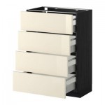 МЕТОД / МАКСИМЕРА Напольн шкаф 4 фронт панели/4 ящика - 80x37 см, Рингульт глянцевый кремовый, под дерево черный