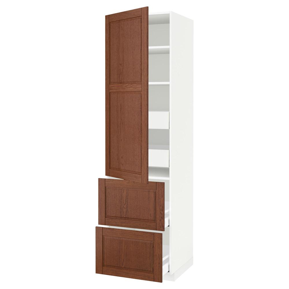 МЕТОД / МАКСИМЕРА Высокий шкаф+полки/4 ящика/2дверцы - белый, Филипстад коричневый, 60x60x220 см