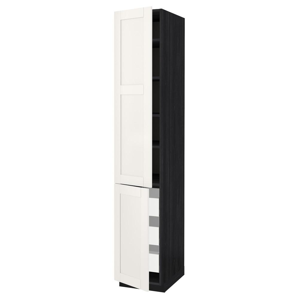 МЕТОД / МАКСИМЕРА Высокий шкаф+полки/3 ящика/2 дверцы - под дерево черный, Сэведаль белый, 40x60x220 см