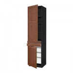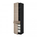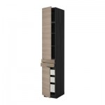 МЕТОД / МАКСИМЕРА Высок шкаф+полки/5ящк/2дверцы/2фрнт - 40x60x200 см, Брокхульт под грецкий орех светло-серый, под дерево черный
