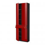 МЕТОД / МАКСИМЕРА Высок шкаф+полки/5ящк/2дверцы/2фрнт - 60x60x240 см, Рингульт глянцевый красный, под дерево черный