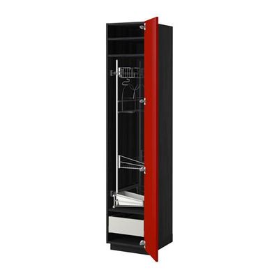 МЕТОД / МАКСИМЕРА Выс шк с отд д/акс д/убрк - 40x60x200 см, Рингульт глянцевый красный, под дерево черный