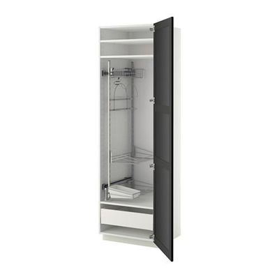 МЕТОД / МАКСИМЕРА Выс шк с отд д/акс д/убрк - 60x60x200 см, Лаксарби черно-коричневый, белый
