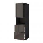 МЕТОД / МАКСИМЕРА Выс шк д/дхвк+двр/2фрнт/2выс ящ - 60x60x200 см, Рингульт глянцевый серый, под дерево черный