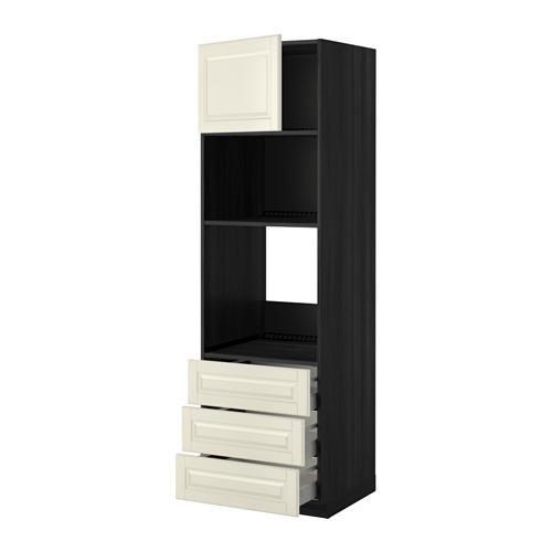 МЕТОД / МАКСИМЕРА Высок шкаф д/духовки/СВЧ/дверца/3ящ - под дерево черный, Будбин белый с оттенком, 60x60x200 см