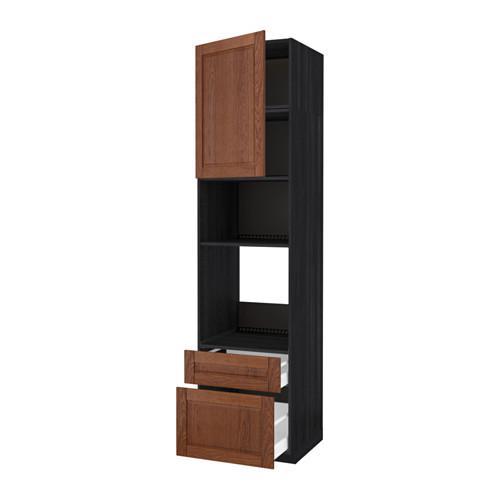 МЕТОД / МАКСИМЕРА Высок шкаф д/духовки/СВЧ/дверца/2ящ - под дерево черный, Филипстад коричневый, 60x60x240 см
