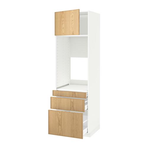 МЕТОД / МАКСИМЕРА Выс шкаф д/двойн духовки/3ящ/дверца - белый, Экестад дуб, 60x60x200 см