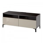 БЕСТО Тумба д/ТВ с ящиками - черно-коричневый/Сельсвикен глянцевый/бежевый, направляющие ящика,нажимные