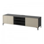 БЕСТО Тумба д/ТВ с ящиками - черно-коричневый/Сельсвикен глянцевый/бежевый, направляющие ящика,нажимные