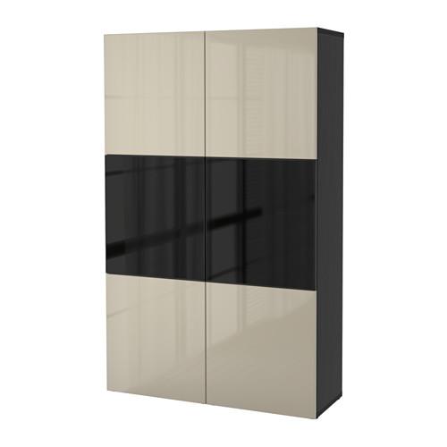 БЕСТО Комбинация д/хранения+стекл дверц - черно-коричневый/Сельсвикен глянцевый/бежевый/дымчатое стекло