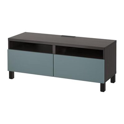 БЕСТО Тумба д/ТВ с ящиками - черно-коричневый/Вальвикен серо-бирюзовый, направляющие ящика,нажимные