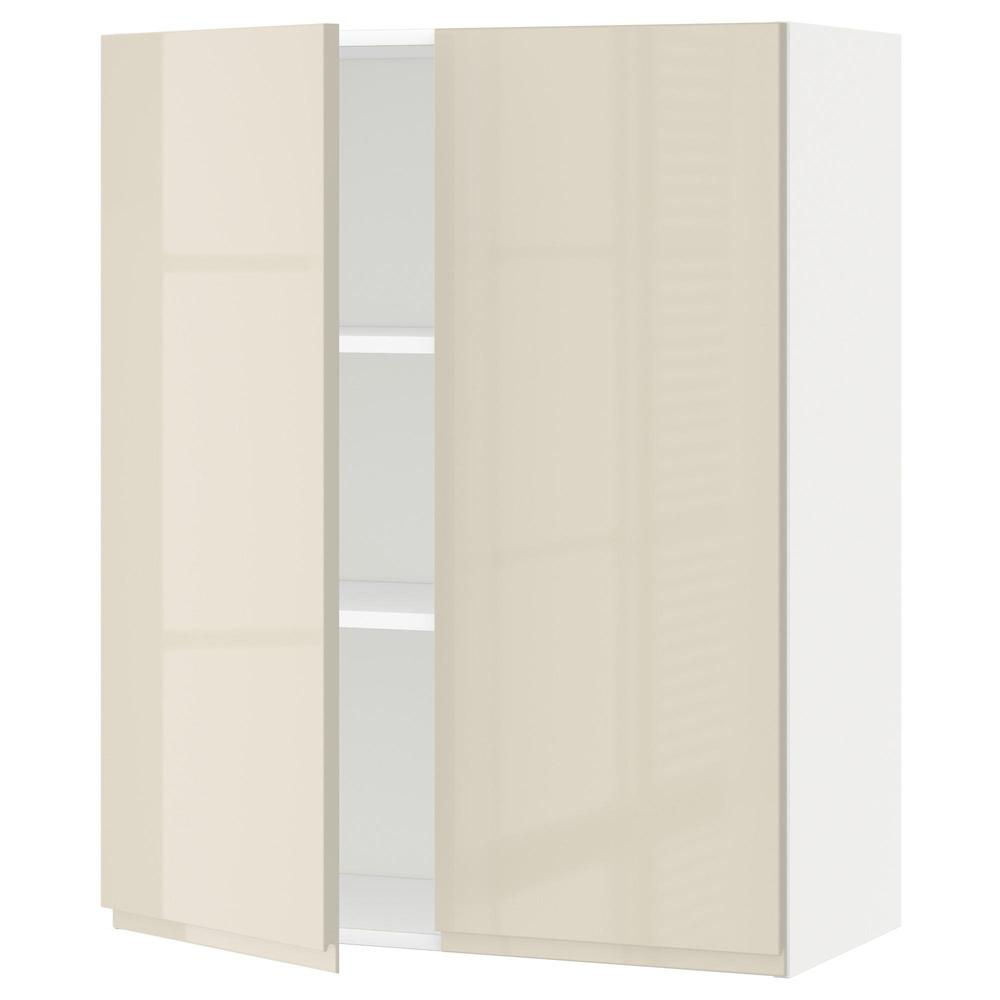 МЕТОД Навесной шкаф с полками/2дверцы - белый, Воксторп глянцевый светло-бежевый, 80x100 см