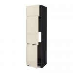 МЕТОД Выс шкаф для хол/мороз с 3 дверями - под дерево черный, Воксторп глянцевый светло-бежевый, 60x60x240 см