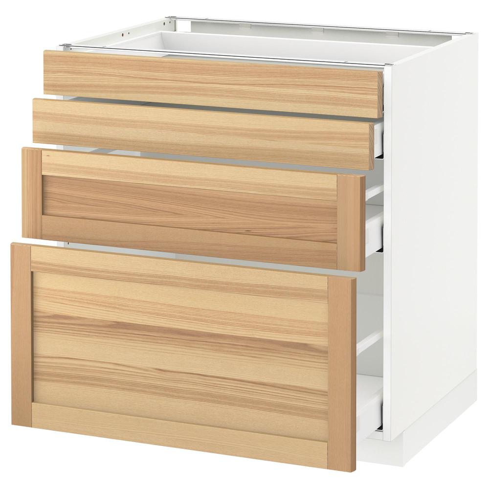 МЕТОД / МАКСИМЕРА Напольн шкаф 4 фронт панели/4 ящика - белый, Торхэмн естественный ясень, 80x60 см