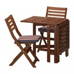 Стол (длина 70 см, ширина 70 см, высота 110 см); стул (ширина 40 см, глубина 49 см, высота 112 см; ширина сиденья 40 см, глубина сиденья 40 см, высота сиденья 80 см).