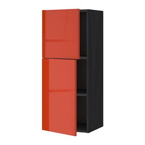 МЕТОД Навесной шкаф с полками/2дверцы - под дерево черный, Ерста глянцевый оранжевый, 40x100 см