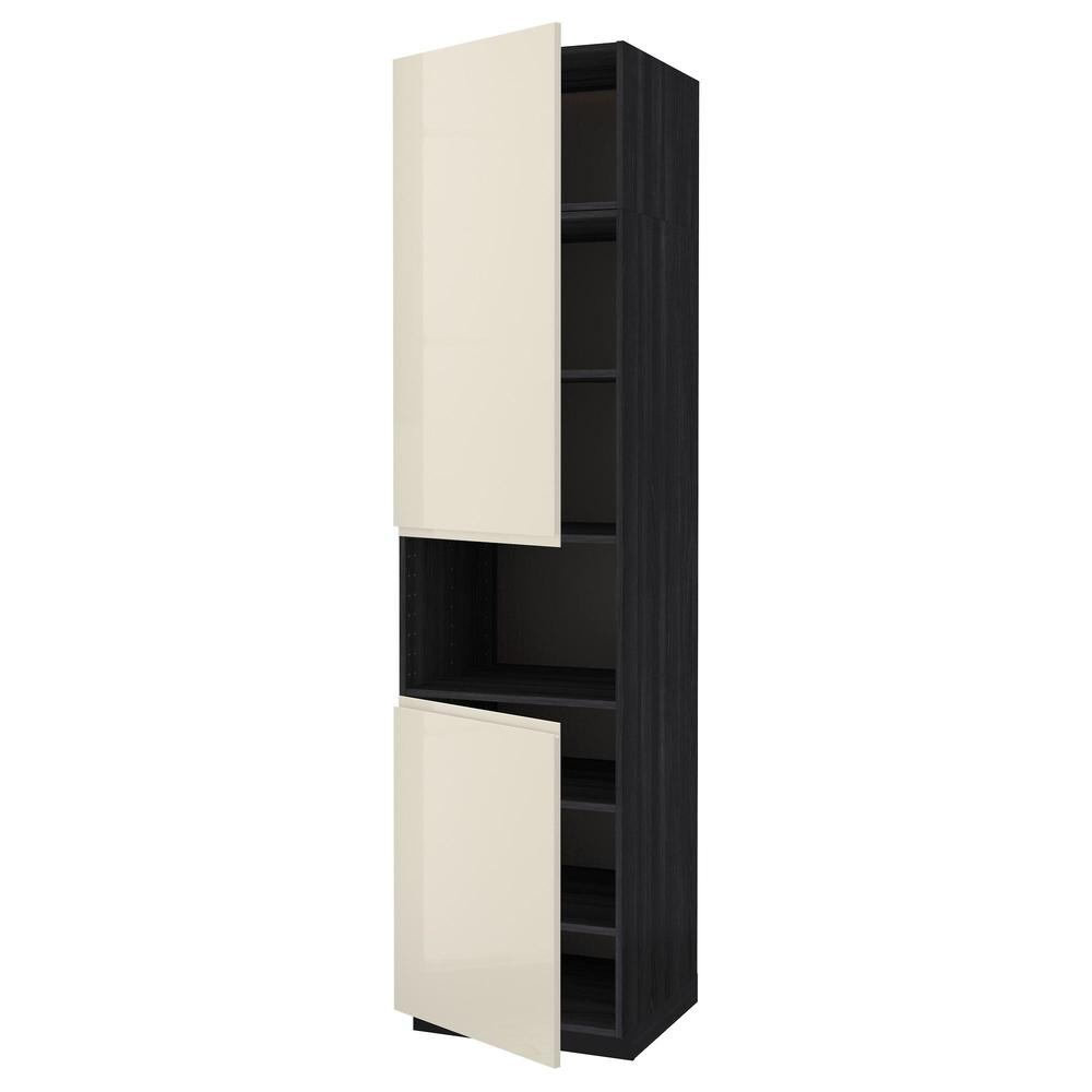 МЕТОД Выс шкаф д/СВЧ/2 дверцы/полки - под дерево черный, Воксторп глянцевый светло-бежевый, 60x60x240 см
