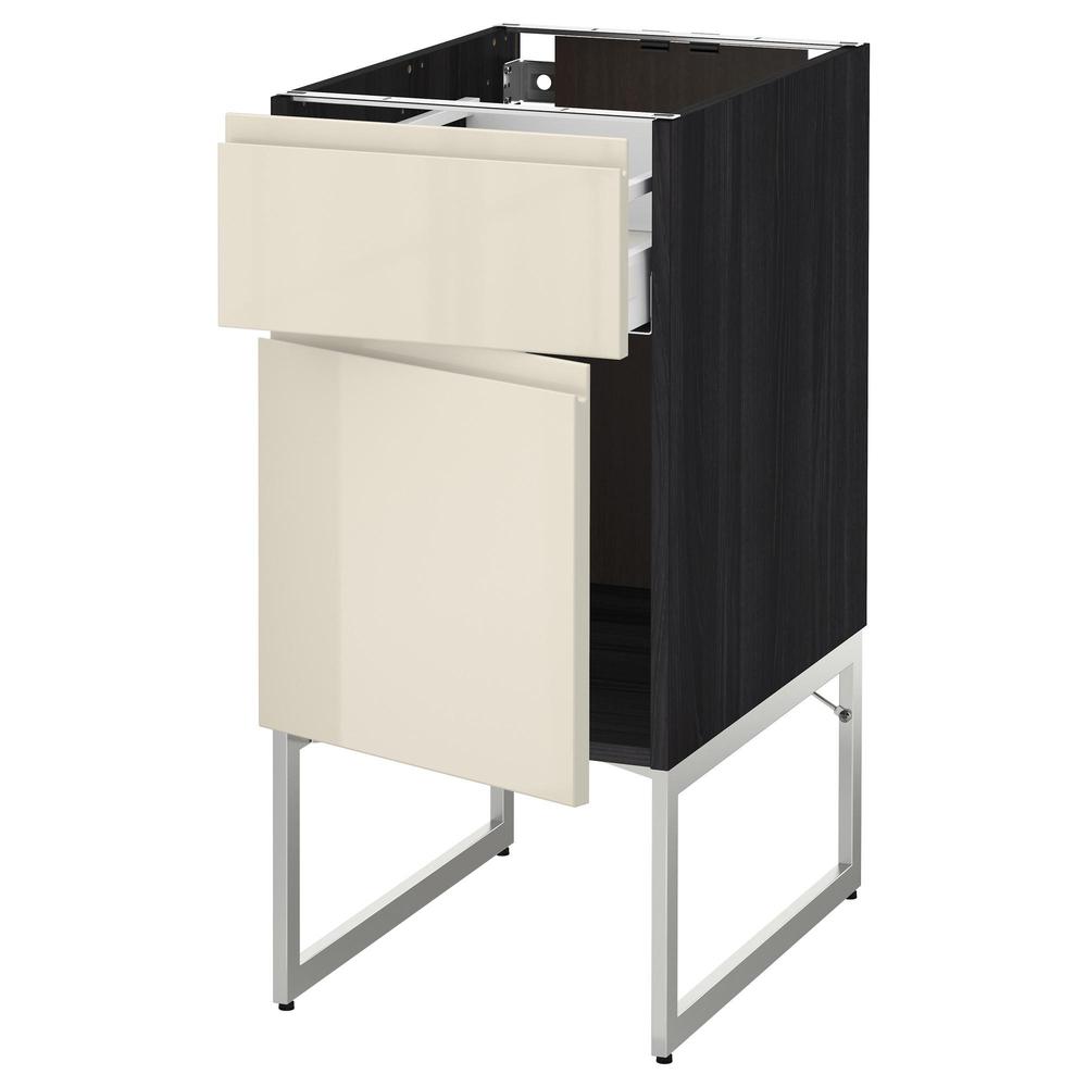 МЕТОД / МАКСИМЕРА Напольный шкаф с ящиком/дверью - под дерево черный, Воксторп глянцевый светло-бежевый, 40x60x60 см