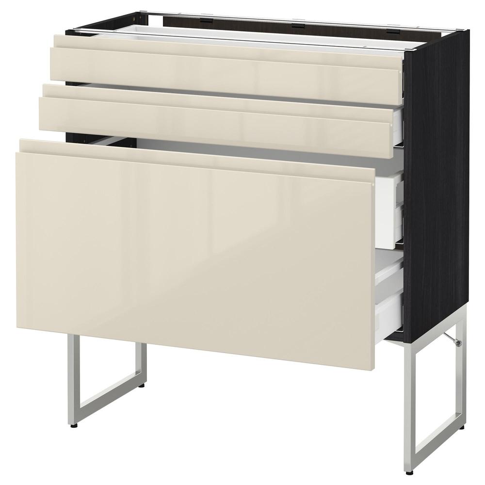 МЕТОД / МАКСИМЕРА Напольн шкаф 3фронт пнл/2низ/2ср ящ - под дерево черный, Воксторп глянцевый светло-бежевый, 80x37x60 см