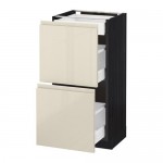 МЕТОД / МАКСИМЕРА Напольный шкаф/2фасада/3ящика - под дерево черный, Воксторп глянцевый светло-бежевый, 60x37 см
