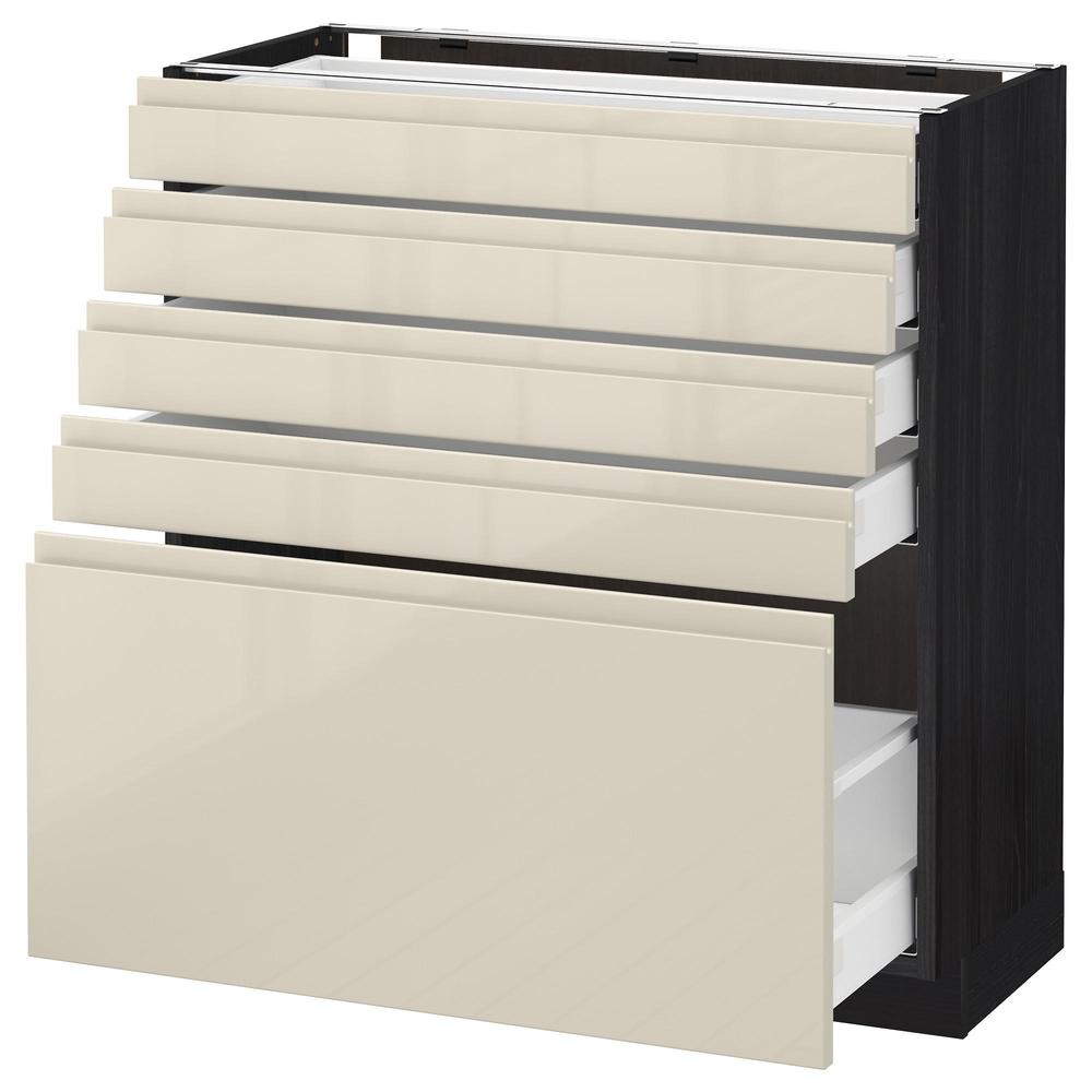 МЕТОД / МАКСИМЕРА Напольный шкаф с 5 ящиками - под дерево черный, Воксторп глянцевый светло-бежевый, 80x37 см