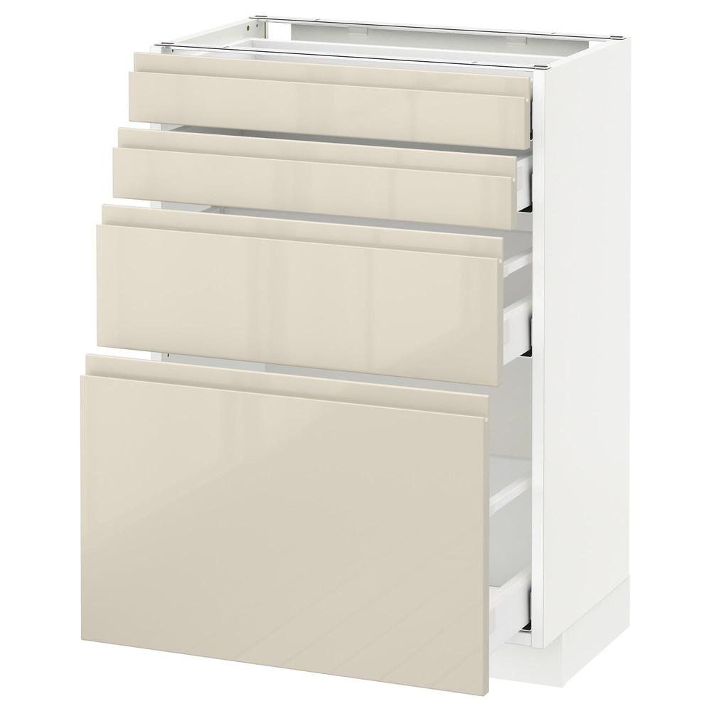 МЕТОД / МАКСИМЕРА Напольн шкаф 4 фронт панели/4 ящика - белый, Воксторп глянцевый светло-бежевый, 60x37 см
