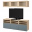БЕСТО Шкаф для ТВ, комбин/стеклян дверцы - под беленый дуб/Вальвикен серо-бирюзовый, прозрачное стекло, направляющие ящика,нажимные