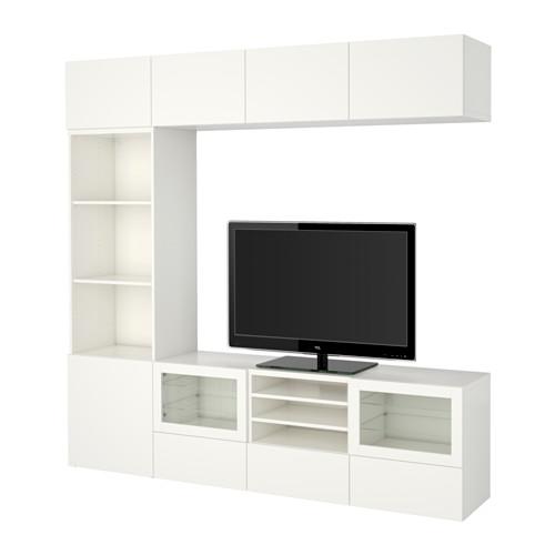 БЕСТО Шкаф для ТВ, комбин/стеклян дверцы - Лаппвикен/Синдвик белый прозрачное стекло, направляющие ящика, плавно закр